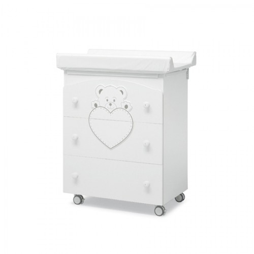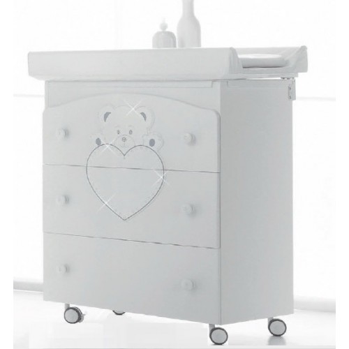 Пеленальный комод с ванночкой Erbesi Cucciolo предназначен для хранения детских вещей. Комод снабжен ванночкой, которую по истечении времени, когда малыш подрастет, можно будет убрать без ущерба для внешнего вида комода. Комод изготовлен из МДФ бука высокого качества, изящно украшен аппликацией и декорирован стразами Swarovski.